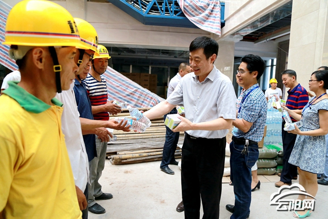 8月1日,县人大常委会主任赵勇率队深入施工现场,向冒着高温坚持一线工作的工人表示慰问,并为他们送上防暑降温物品。