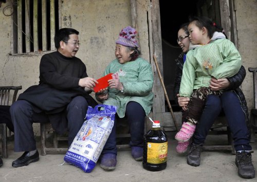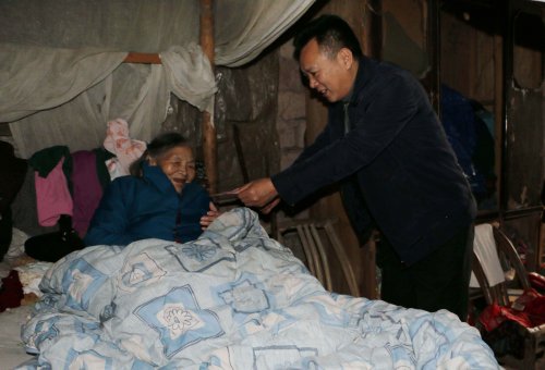 2015年2月11日,姚洪春主任慰问桑坪镇受灾